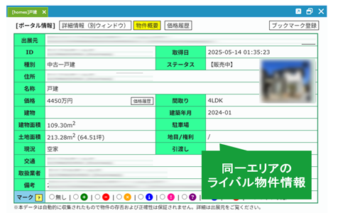 現在売り出し中のライバル物件との比較をもとに、価格提案することができます。